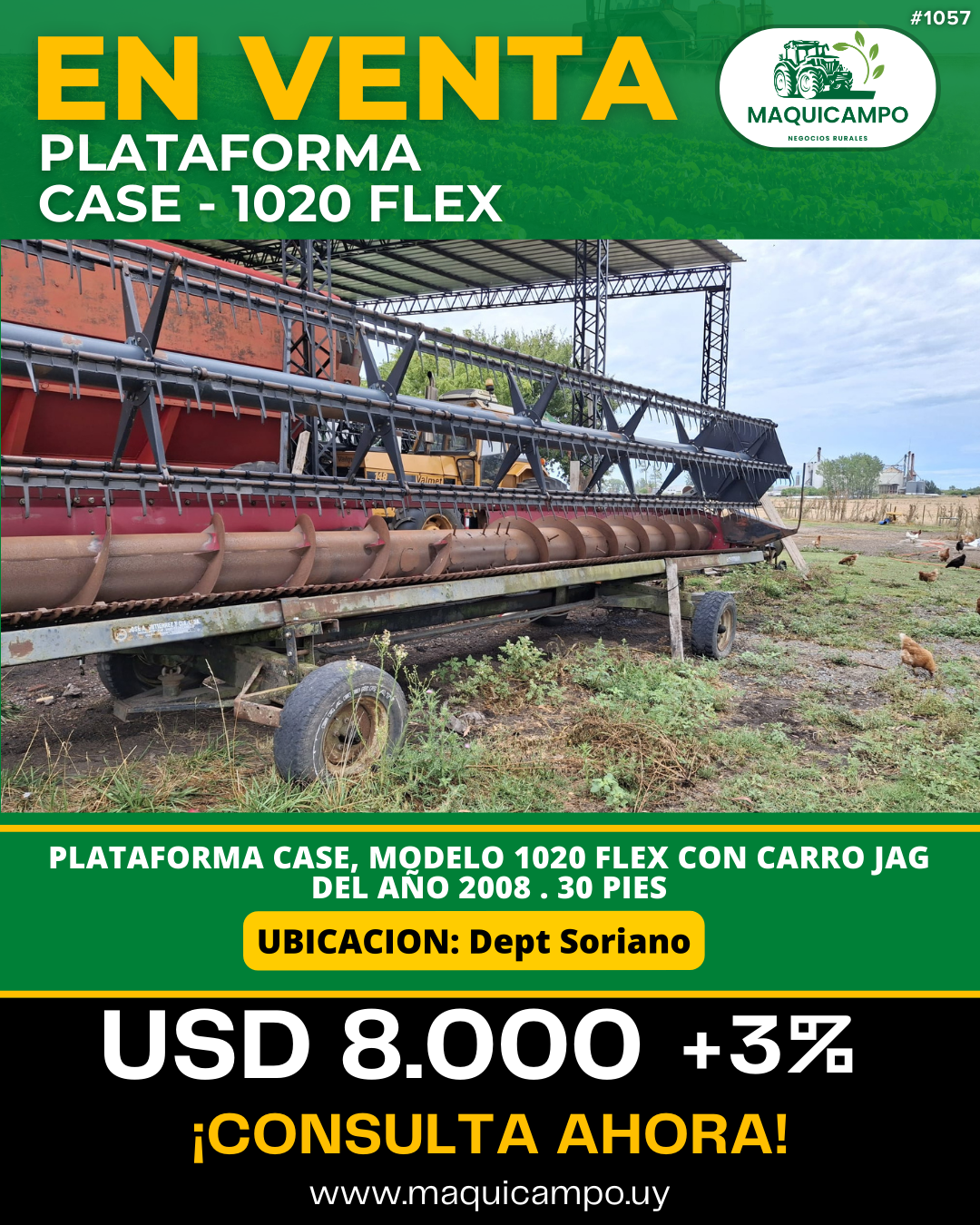 🌾 Plataforma CASE 1020 FLEX 30 pies – Lista para la próxima cosecha